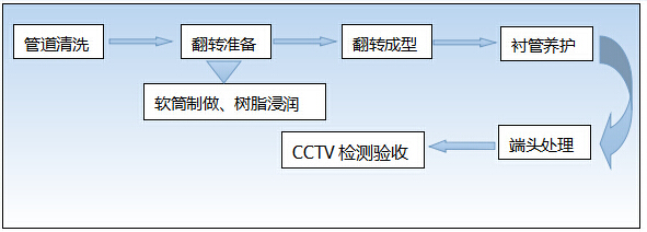 原理:通過(guò)特殊加壓設(shè)備將浸漬了特殊粘合劑的內(nèi)襯軟管翻入待修復(fù)管道,翻轉(zhuǎn)時(shí)浸漬有粘合劑的內(nèi)層翻轉(zhuǎn)到外面與原管道內(nèi)壁緊貼,經(jīng)過(guò)固化最終形成具有防腐防滲功能的內(nèi)襯層,最終達(dá)到修復(fù)管道的目的。