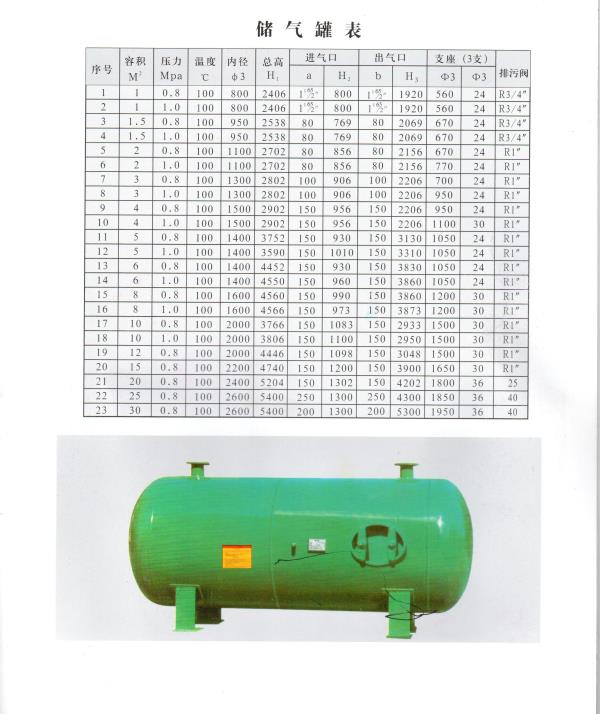 儲(chǔ)氣罐參數(shù)表